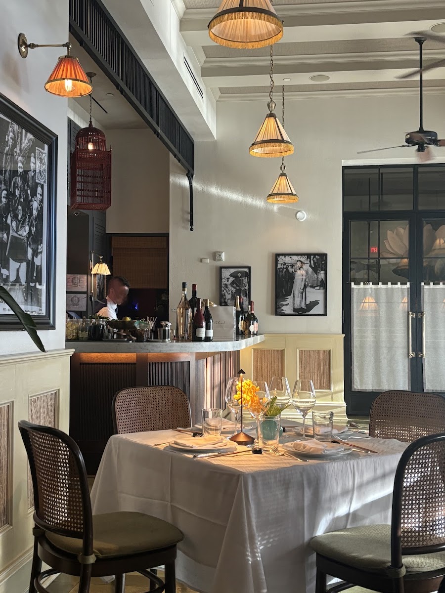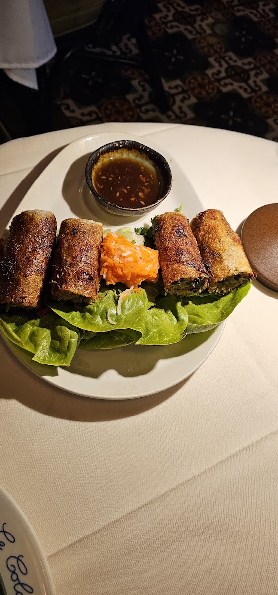 The menu blends Vietnamese flavors with French technique, a combination rooted in history rather than trend-chasing. Dishes like shaking beef, lemongrass chicken, and crispy shrimp rolls are prepared with balance in mind. I once asked a server how the beef stays so tender, and they explained the quick high-heat sear method used in traditional Vietnamese kitchens. According to culinary research published by the Institute of Food Technologists, high-heat cooking helps lock in moisture while enhancing flavor, which clearly shows in the final dish here.
